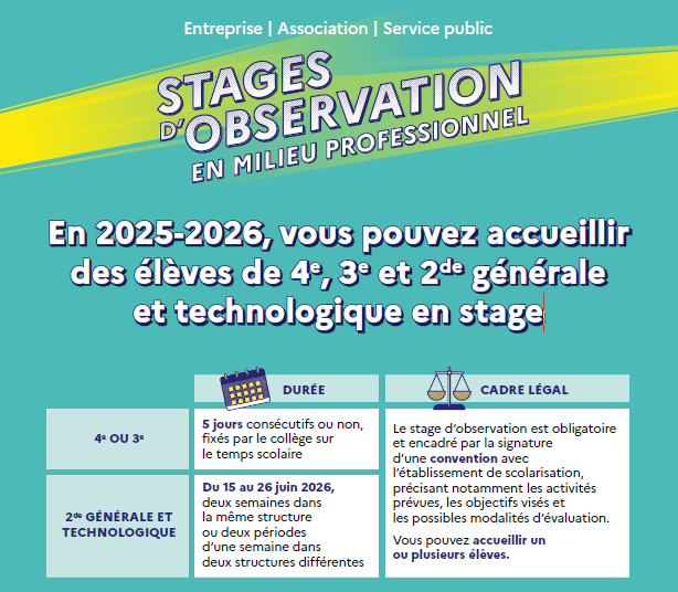 Du 15 au 26 juin, accueillez des élèves de seconde en stage d’observation