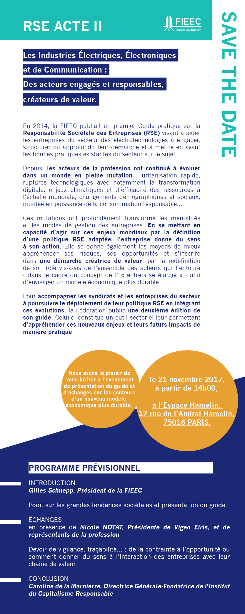La FIEEC, ses syndicats et leurs entreprises partagent des problématiques communes en termes de RSE et de partenariat avec les parties prenantes et ont donc souhaité mener une démarche collective. Cette approche sectorielle a permis d’identifier les domaines d’actions prioritaires pour le secteur et a mené à la publication de 2 guides pratiques en 2014 et en 2017 visant à :